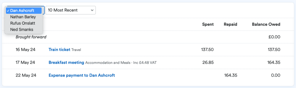 Employees can record their out-of-pocket expenses in FreeAgent too. The running balance in your expense report lets you keep tabs on how much needs to be reimbursed.